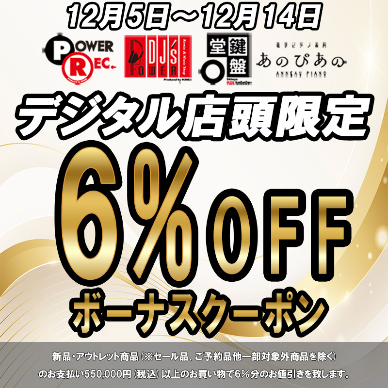 イケベデジタルタワー / DIGITAL TOWER 1000_master0203DTMソフトウェアダウンロードバナー-新ロゴ100600 鍵盤堂限定・Roland JUNOシリーズの最新モデルアップグレード年末年始買替キャンペーン!! キャンペーンキーボード・シンセ鍵盤堂 初心者向けの軽量級シンセサイザーでいまや超定番となったRoland JUNOシリーズ。初代モデル登場から20年という大きな節目を迎えたJUNOシリーズの最新モデル「Roland JUNO-D」シリーズ(2024年10月末 […] 2025年12月05日 日々更新!鍵盤堂・あのぴあの 店頭お持ち帰り商品リスト あのぴあの電子ピアノキーボード・シンセ鍵盤堂 鍵盤楽器・アコーディオン専門店 渋谷・鍵盤堂にて店頭でご購入・お持ち帰りいただける商品のリストを日々更新致します。店頭でご相談の上、購入お持ち帰りされたい方、急ぎで当日中にお持ち帰りになりたい方等、店頭お持ち帰りを希望さ […] 2025年12月05日 【12/5~12/14】デジタル店頭限定・6%OFFボーナスクーポン配布! あのぴあのキャンペーンセールDJキーボード・シンセ鍵盤堂パワーレックパワーDJ's PowerRec・PowerDJs・鍵盤堂・あのぴあの各店頭限定でご利用いただけます!! 【ご注意事項】◆ご利用可能期間:~2025年12月14日20:00まで◆ご利用対象条件:税込550,000円以上の対象品お会計額に […] 2025年12月04日 【ZOOM】デジタルの利便性とアナログの操作性を両立したミキサー&レコーダー&オーディオインターフェイス”LiveTrak L12next”が登場! 新製品DTM・レコーディングパワーレック デジタルの利便性と、アナログの操作性を両立アナログミキサーは各チャンネルに専用のノブがあるため直感的にすばやく操作できますが、シーン(設定)を保存したり呼び出したりすることはできません。一方、多くのデジタルミキサーはシー […] 2025年12月04日 【IK Multimedia】ひと味違う!IKモニタースピーカー系【ブラックフライデー・豪華特典付き特価プロモ開催!】 キャンペーンセールDTM・レコーディングパワーレック 【IK Multimedia】 人気のモニタースピーカー系ハードウェア製品が「期間&台数限定特価プロモーション」開催!さらに今年はひと味違う! 【iLoud Micro Monitor (Black / White)】 […] 2025年11月28日 【Nothing/cmf by NOTHING】ナッシングヘッドフォン・ブラックフライデーセール開催!(12/1まで) セールDTM・レコーディングパワーレック この夏発売のNothing社の最新アクティブノイズキャンセリング(ANC)対応・Bluetoothワイヤレスヘッドフォン【Nothing Headphone (1)】【cmf by NOTHING CMF Headpho […] 2025年11月20日 【SENNHEISER】Black Friday&Final Sale 2025開催!最大32%OFF!(~12/24まで) セールDTM・レコーディングパワーレック 2025年ゼンハイザーブラックフライデー&年末ファイルセール開始!!今年はなんと!昨年発売の開放型ヘッドフォン【HD 490 PRO / PLUS】も参戦!!定番&人気イヤフォン【IE 100 PRO】も過去最大のお値引 […] 2025年11月20日 【Antelope Audio】ディスクトップサイズ・ハイスペック2in/2outオーディオインターフェイス【Zenith 2】新登場! 新製品DTM・レコーディングパワーレック ブルガリア音響ブランド「アンテロープ」社から192kHz / 32-bit対応USB-C/2×Mic/Line/Hi-Zイン、2×MONITOR/HPアウト搭載のコンパクトオーディオインターフェイス【Zenith2】が満 […] 2025年11月19日 【YAMAHA】最強シンセMONTAGE Mがミドルクラスへ大胆にコンバート!「MODX M」が登場 新製品製品レビューレポートキーボード・シンセ鍵盤堂 “最強候補のミドルクラスシンセ「MODX M」が誕生!実物を見た所感をご紹介致します! 国内外から高い評価を集めているフラッグシップシンセ「MONTAGE M」 その音源を極めて近い形で受け継いだミドルクラス […] 2025年11月18日 【AMS Neve】新製品!500シリーズのフォーマットで実現した・コンプレッサー/リミッター 新製品DTM・レコーディングパワーレック Neveの純粋なDNAを受け継ぐ、精度とパワー フラッグシップ88RSアナログ・コンソールの伝説的なダイナミクス・セクションがコンパクトで入手しやすい500シリーズのフォーマットに。英国で設計・製造の88R LBCコンプ […] 2025年11月12日 【Steinberg】国内ナンバーワンDAWソフトウェアCubaseシリーズがバージョン15へ! 新製品DTM・レコーディングパワーレック ハリウッドの作曲家やビルボードチャートのプロデューサーからビギナーに至るまで、世界中の音楽シーンがいつも信頼を寄せる DAW。それが Cubase です。 Cubaseシリーズは用途に合わせて3つのグレードがあります。 […] 2025年11月06日 【TASCAM】「Portacapture」ウィンドスクリーンプレゼント! クリエイターを応援!キャンペーン開催!(2026年3月31日まで) キャンペーンDTM・レコーディングパワーレック ★【フィールドレコーディングや音声収録におすすめのウィンドスクリーンプレゼント! 『映像・動画クリエイターを応援!キャンペーン』開催!】 キャンペーン期間中に対象製品をお買い上げののち、ご応募いただいた方もれなく全員に各 […] 2025年11月01日 開催中!随時更新!【ブラックフライデー 2025】DTM・レコーディングセール情報! キャンペーンセールDTM・レコーディングパ