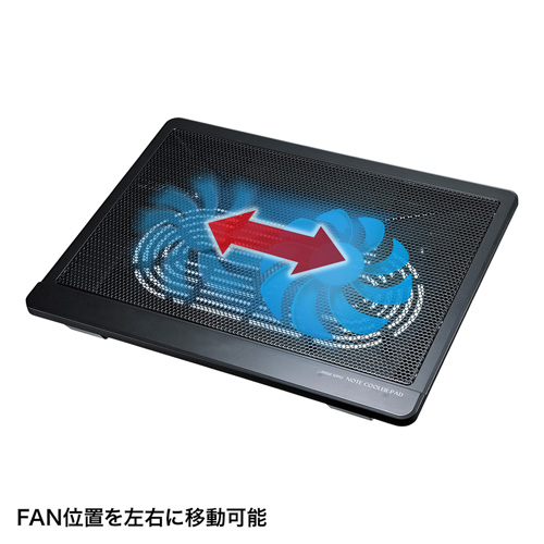 ●ファンを左右に移動でき、ピンポイントで冷却できるノート用クーラーパッド。