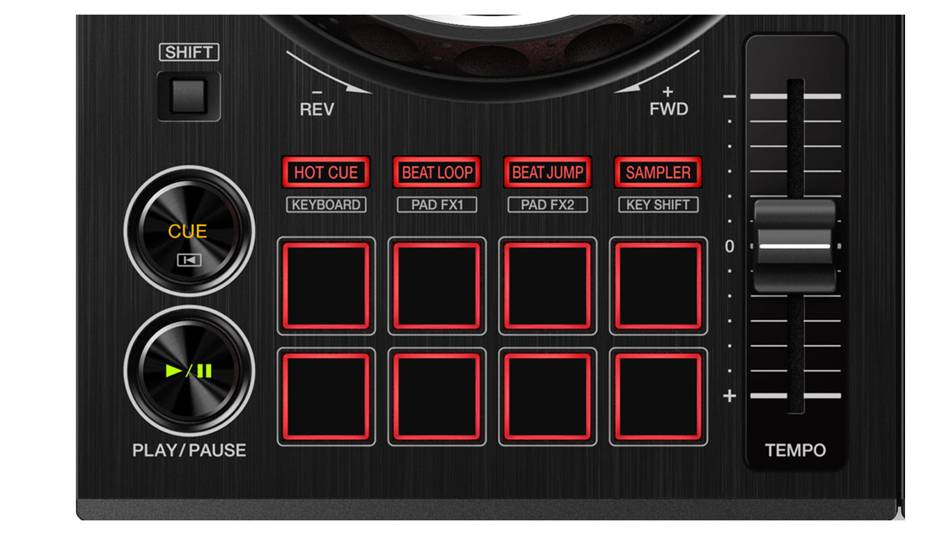 一度買ってしまえば、基本的なDJプレイが十分に楽しめるDJコントローラーです。以前の記事で、「DJプレイをする上で特に重要となる基本の機能がフォーカスされている」と書きましたが、今回は「具体的にどういうことができるの?」という点について具体的にご紹介していきます。