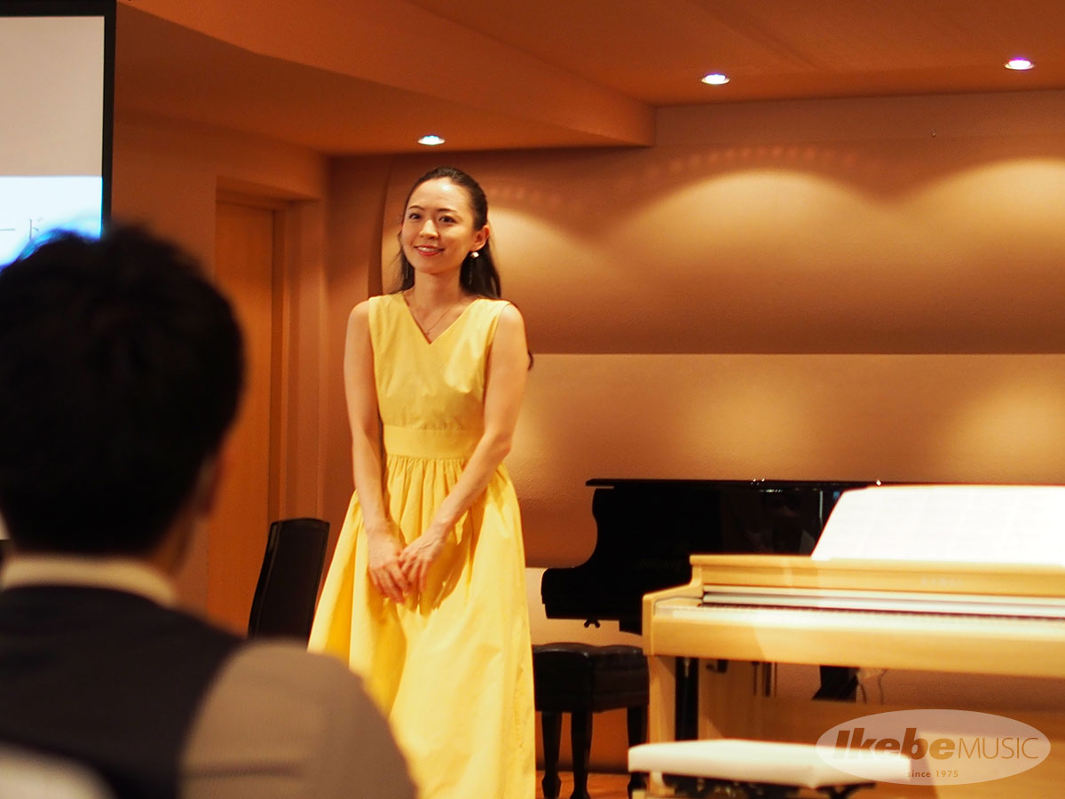 今回の発表会では、ピアニスト小池美奈さんがスペシャルゲストとして登場。CN201と内蔵スピーカーのみで、ドビュッシーの「ベルガマスク組曲」プレリュードを演奏して頂きました。