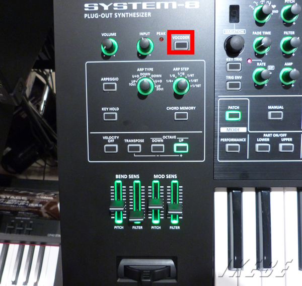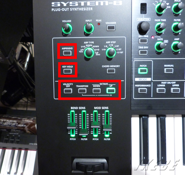 「SYSTEM-8」にはパッチモードとパフォーマンスモードがあり、パッチモードでは、1つの音色を8ポリで演奏できます。