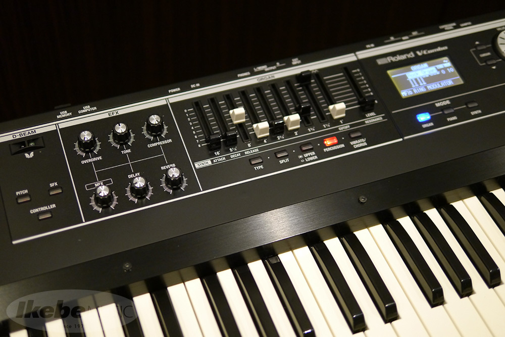 如何でしたか?あえて「オリジナルの忠実な再現」ではなく、ステージでの弾き易さや音抜け、PAからの最終的なサウンド重視したデフォルメ的発想は、非常にローランドらしい、柔軟で現場のニーズに沿ったソリューションであると感じました。サウンド&ルックス共にライブで存在感を発揮する即戦力鍵盤楽器”V-Combo”、是非ご注目ください!