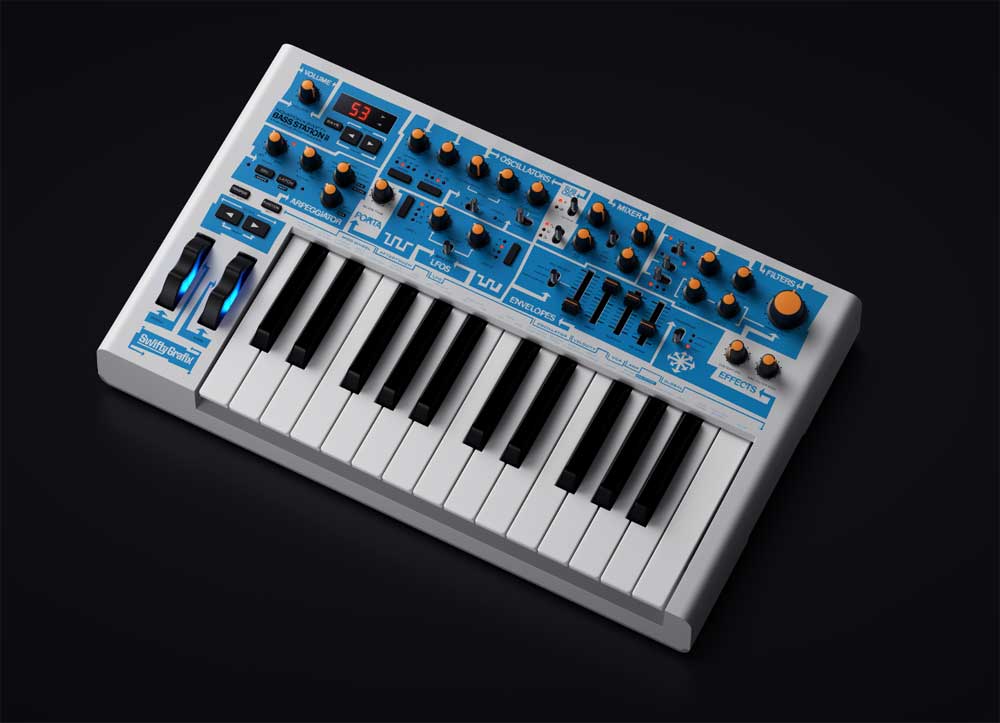 25鍵盤のコンパクトな筐体から発せられるパワフルなシンセサウンドで人気の「 Novation Bass Station II 」より、イギリスを代表するグラフィック・デザイナー、Ian“Swifty”Swiftとのコラボレーションモデル、鮮やかなブルー&ホワイトを纏った特別仕様!