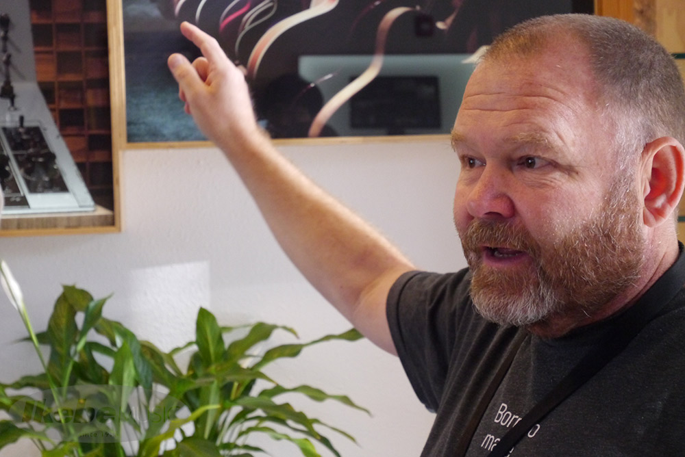 「Universal Audio(以下UA)へようこそ!本日は遠いところからお越しいただきありがとうございます。私達がスタートした、現在のUAはサンタクルーズにある私の地下室から始まり、その後ガレージへと拡大していき、次第に大きな規模のビジネスに発展していきました。現在の建物に移転したのは5年前になりますが、ここではアナログ機材の製造、研究開発、セールス/マーケティング業務が行われており、更には本格的な機能を持つスタジオを有しています。シリコンバレーからも近く、海にも近く、周辺には多くのミュージシャンやサーファー、そして有望な大学生が住んでいます。本当に良い環境ですね。