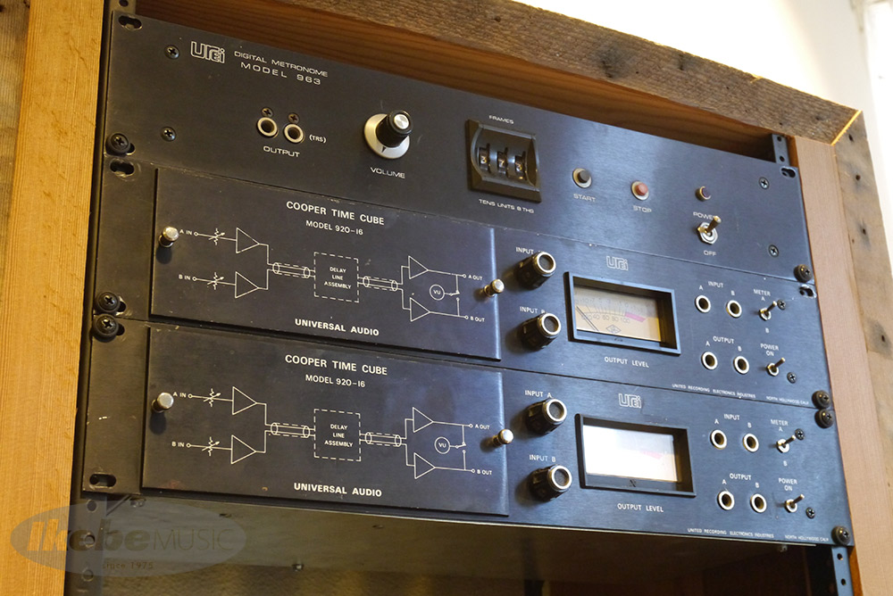 UADプラグインにもラインナップしている”Cooper Time Cube”は、2本の10フィートのホースを使用したディレイ・アウトボードです。まず基本的な原理として、空気の振動を介して伝達される音は、1フィート(約30cm)で1msのディレイが得られます。ホースの片側にスピーカーを起き、反対側にマイクを設置して音を拾えば、1msのディレイが完成します。10フィートの長さであれば、10msのディレイになります。それをスタジオ機材の中でどうやってやるのでしょうか?」