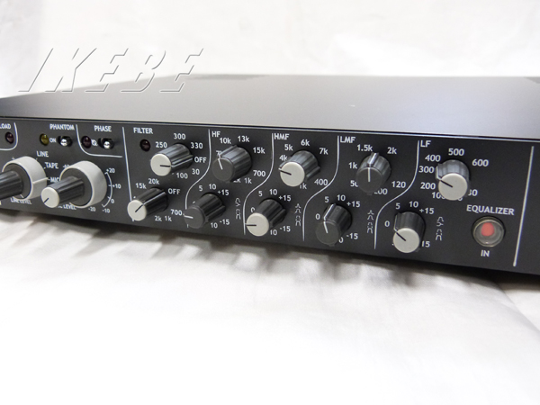 4バンド、周波数連続可変、ゲインのノブをひっぱり上げると、Qカーブが鋭角、あるいはシェルビング/ピーキング切り替えに!