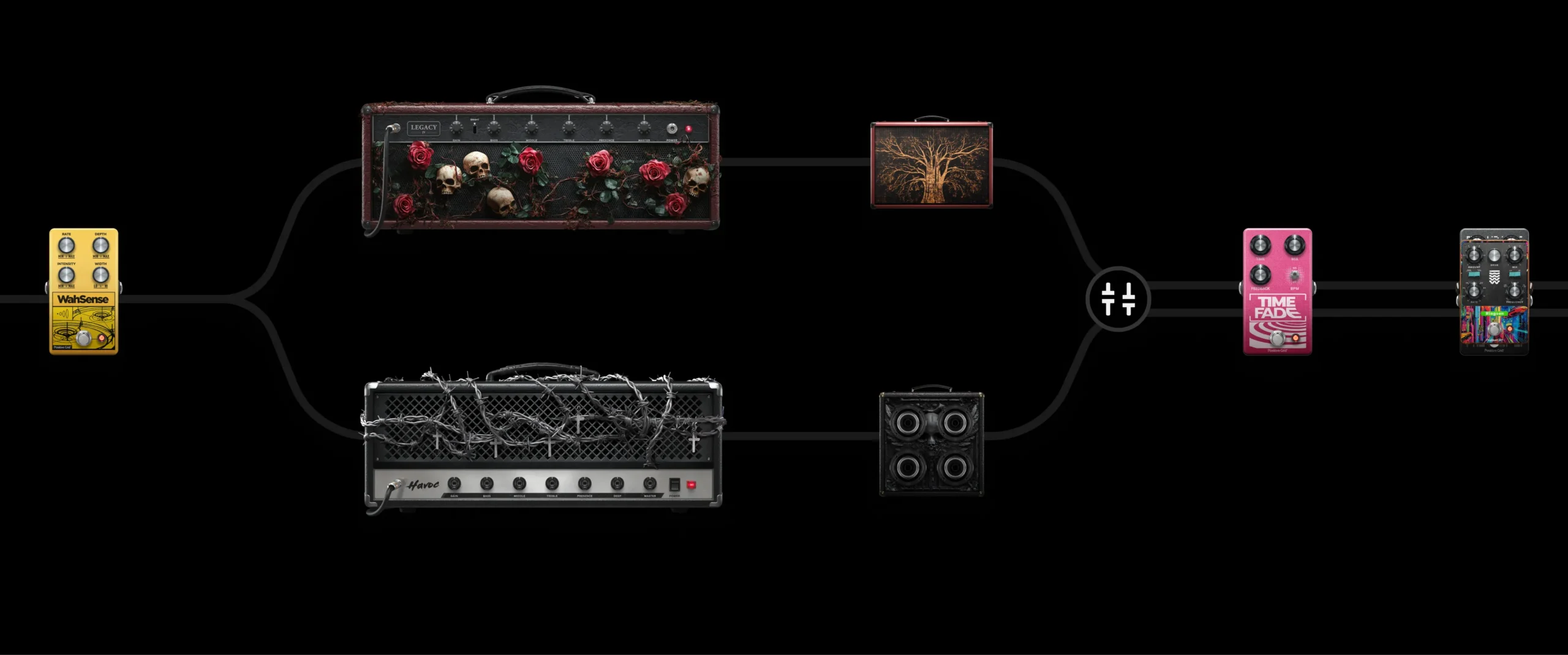 直感的なドラッグ&ドロップUIと、刷新されたプリセット・システムにより、容易にトーン・ビルディングと管理が可能です。Dual-patch signal chain アーキテクチャにより、物理的なセットアップにおけるノイズやインピーダンスの制限なしに、複雑なルーティングも自由に構築可能です。
