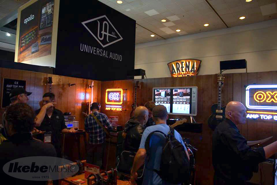 NAMM Show、UAブースのOXコーナー。数々のヴィンテージアンプにOXが接続されていました。