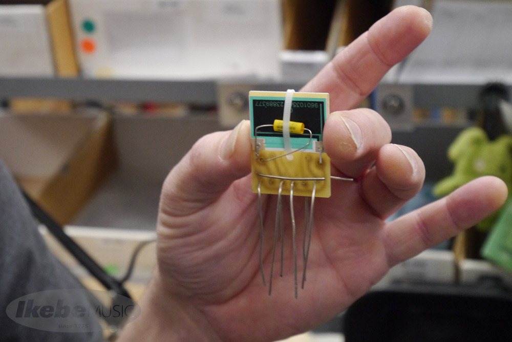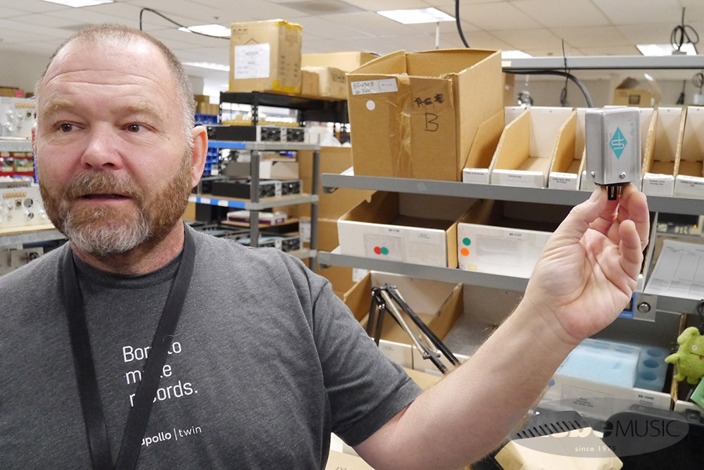 「サンノゼ(シリコンバレーの中心地)にある関連会社で作成した基板がこちらに届いたら、この場で全ての配線、アッセンブリ、テスト等最終的な組み立てが全て手作業で行われています。この工程では、使用される全てのコンポーネントの安定した供給がいちばん難しい部分です。これは1176のキモである、4ボタントリック(全押し)が出来るスイッチパーツの入手と同様に非常に手間が掛かります。そのサウンド、クオリティを維持するためにも、部品の調達がクラシック・アウトボードの製造において最も労力が掛かっている部分と言えるでしょう。」