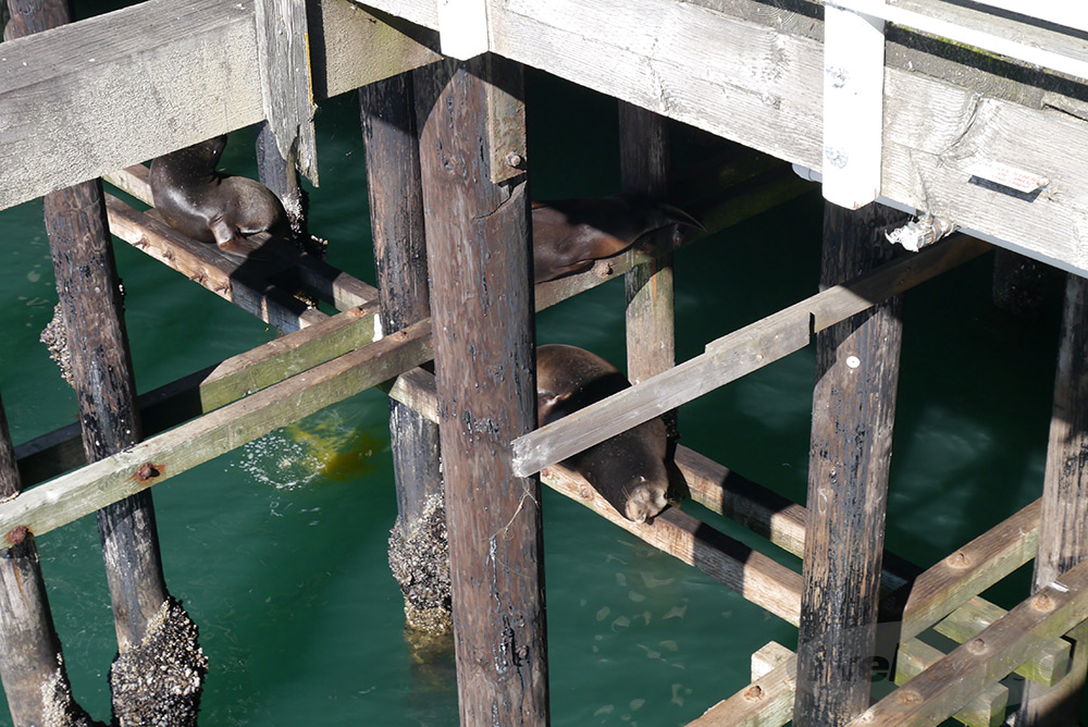 桟橋ではアシカ達が惰眠をむさぼり、大きな湾の向こうにはモントレー。