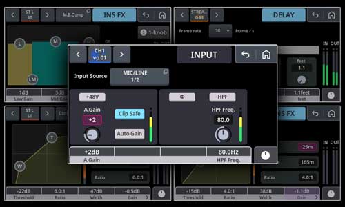 ・ Gate、Comp、EQ、リバーブに加え、過⼤⼊⼒時に⾃動でゲインを下げてクリップを回避する「Clip Safe」、⾃動測定から最適なGAIN を設定の「Auto Gain」を搭載