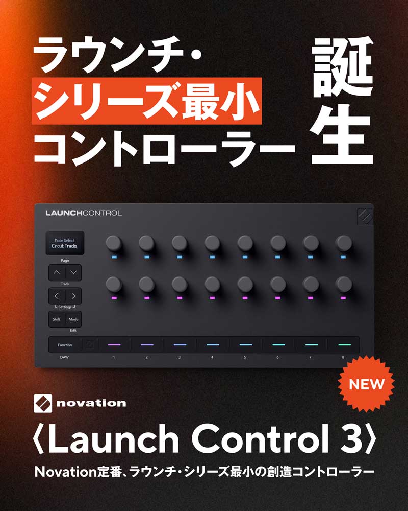 Bass Station(シンセサイザー)、LAUNCH KEYやLAUNCH CONTROL XL3(MIDIコントローラー)などが人気の英国シンセサイザーブランド・ノベーション社からコンパクトながらあらゆるDTM、LIVE環境で柔軟に対応するコンパクト・ハイコストパフォーマンス・コントローラー【Launch Control 3】誕生