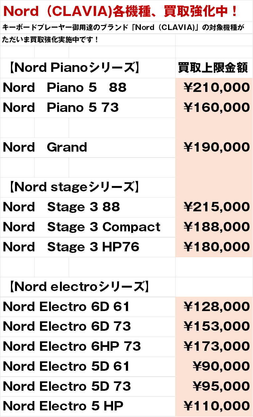 Nord(CLAVIA)の対象モデル買取強化中!