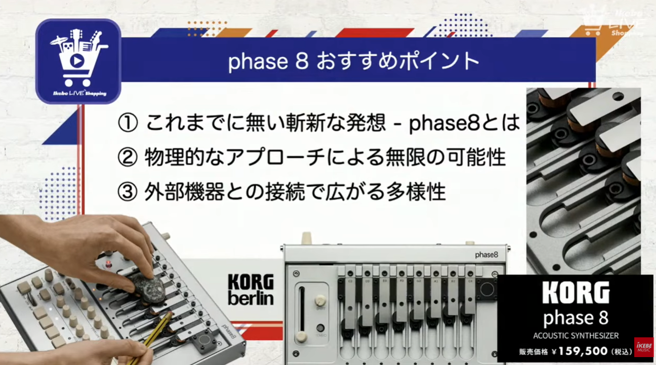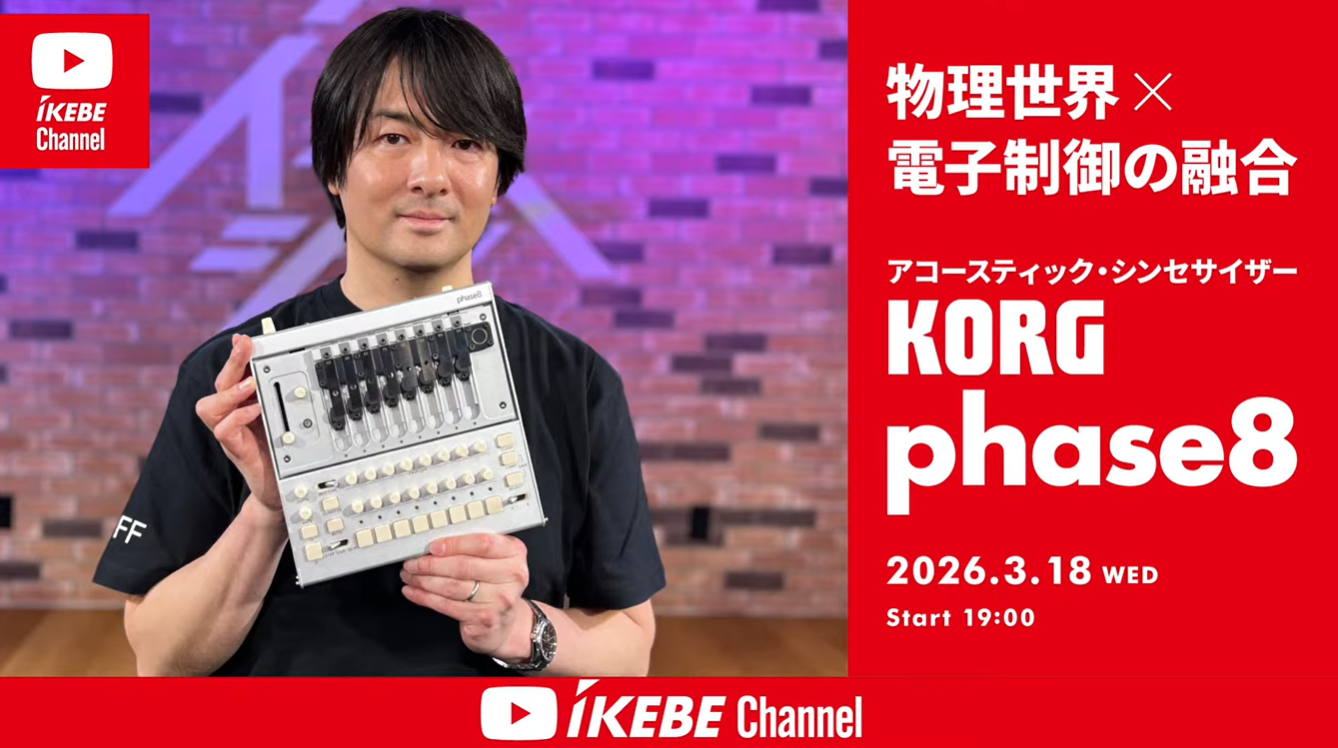 2026年3月18日にIkebe Channelにて配信された「【KORG】物理世界×電子制御の融合 アコースティック・シンセサイザー「KORG phase8」|IKEBE LIVE SHOPPING # 204【鍵盤堂】」から基礎的な使い方を一部文字起こししてご紹介致します。