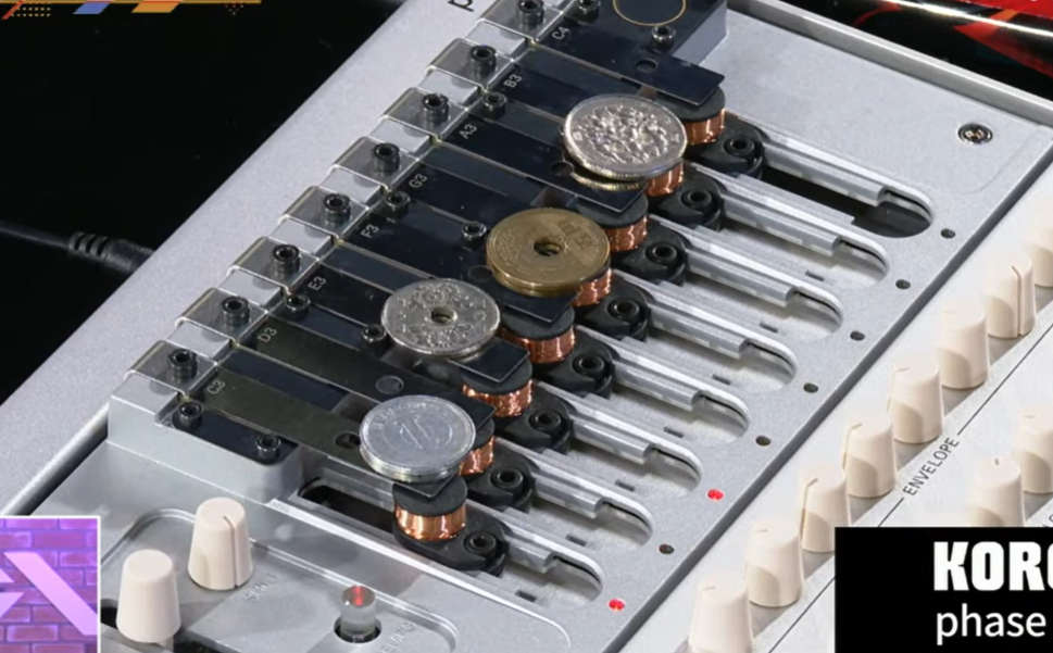 能動的に振動を与えずにシーケンサーやキースイッチを使った発音を行う場合「phase8」は磁力で電子制御して発音させている事もあり、載せる物の重さや形状も影響してきます。