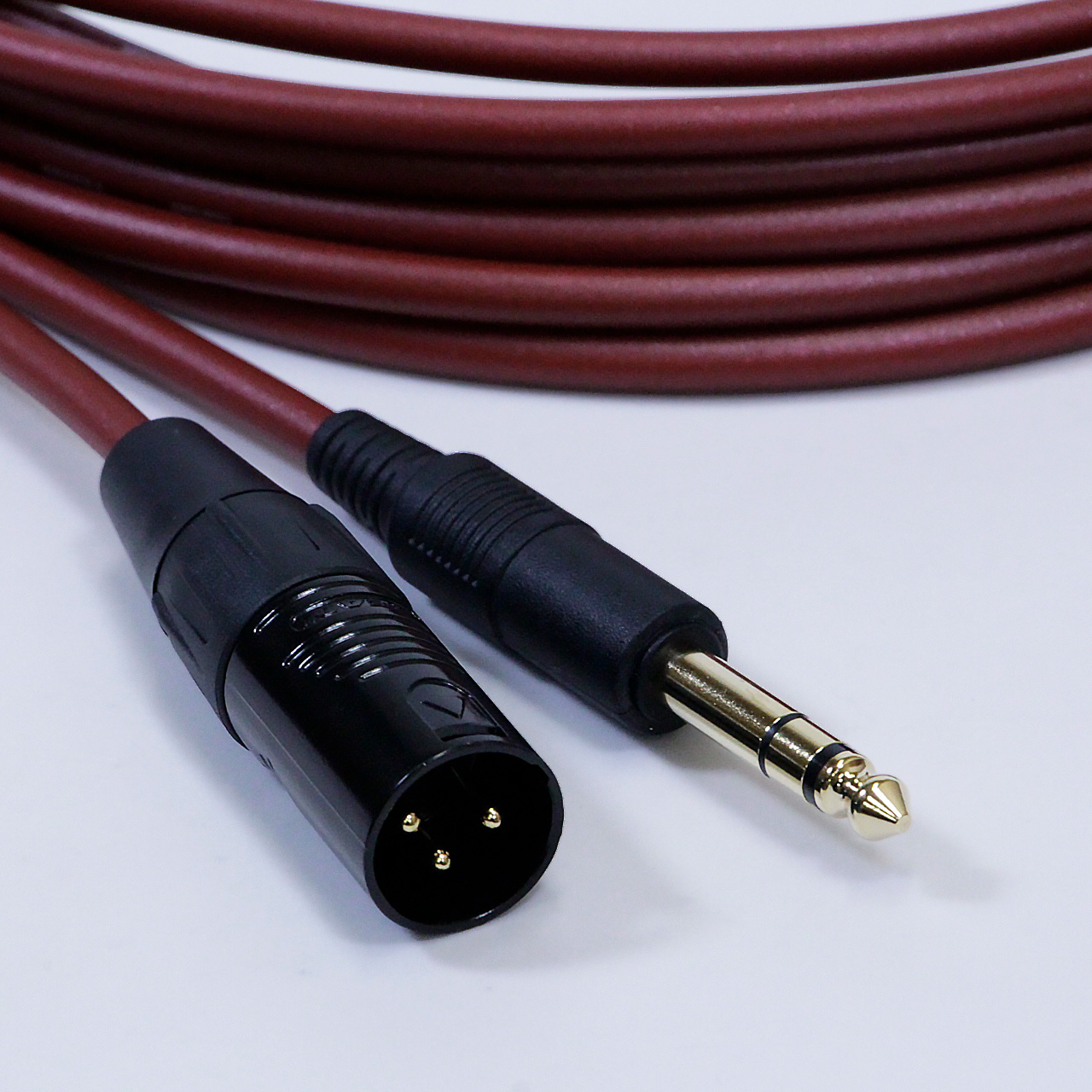ライブや制作現場でも識別しやすい深紅(ラメ入りのクリムゾンカラー)を採用、柔軟で扱いやすいケーブル