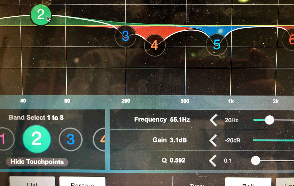 「リミッターの設定が変わるので、音量は小さめです。低音まで柔らかく膨らましても、音はボケずにスピーカーにも負荷はかからない様に。現時点では、dbx driverackのリミッターは-36dBでThresholdがかかり始め、小さな部分は持ち上がり、決して大きい音にならない、という設定。-24dBにすればパーティできるくらい持ち上げられるけど、それはないね(笑)」(オノ セイゲン氏)