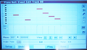 SEQモードでは、ステップレコーディング・リアルタイムレコーディング、またピアノロール画面によるDTMでの打ち込みの様な楽曲制作が行えますよ!