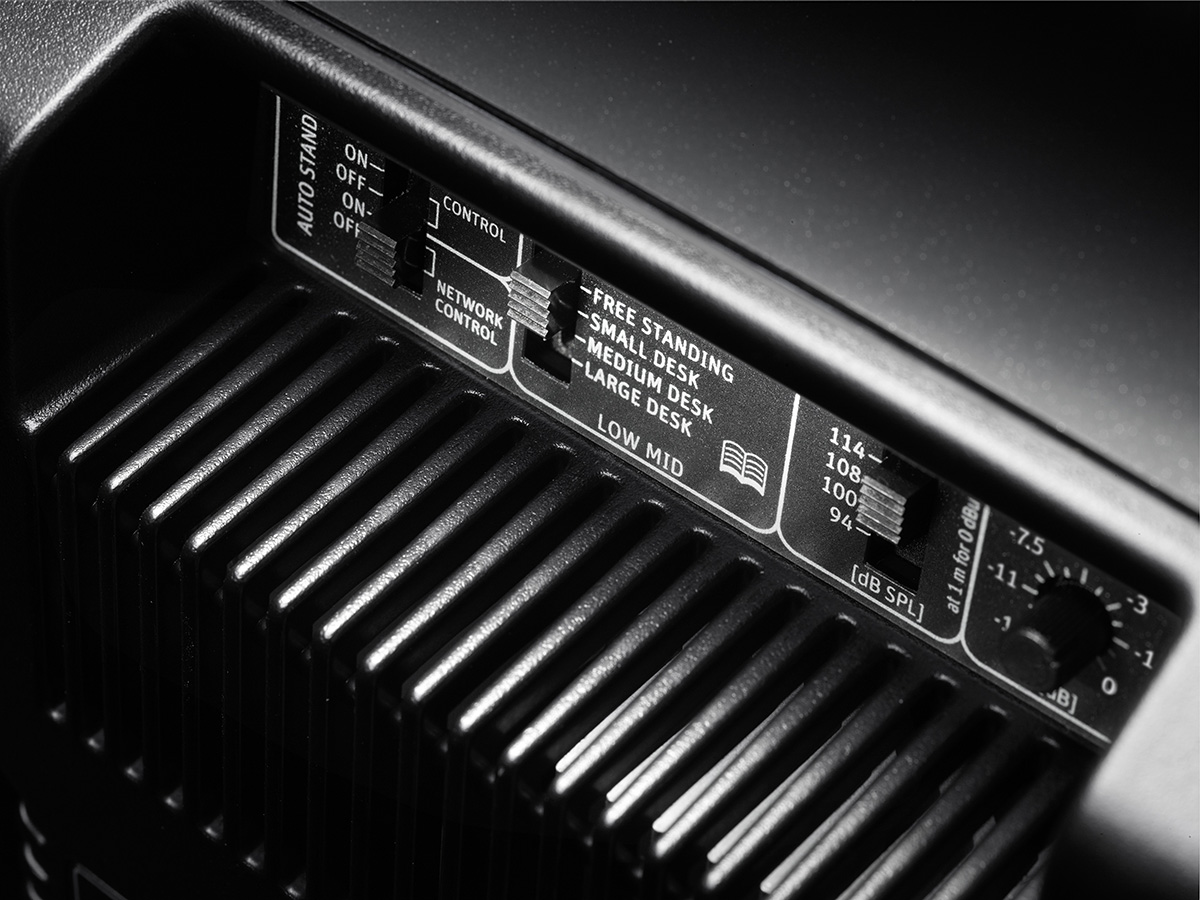 KH 80 DSPの周波数特性は57Hz〜21kHzとなっています。57Hzというのはかなりの低音で、サイズの大きな5インチのモデルでも57Hzまで再生可能なモデルは多くありません。3D形状のキャビネットやロングスロー・バス・ドライバーなど、NEUMANNの独自技術の数々により、高い低域再生能力を実現しています。