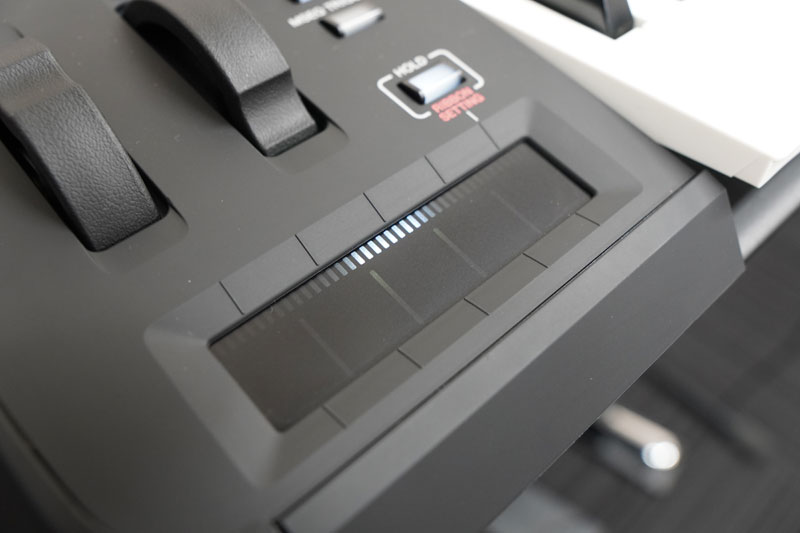 モジュレーションホイール周辺のコントローラーも大きく進化したポイント。リボンコントローラーは通常の連続的なパラメーターコントロールが出来るだけでなく、最大5つのゾーンに分けてスイッチ的な使い方を設定することも可能。例えばオルガン音色の場合は3つのゾーンで、ロータリースピーカーのハーフムーンスイッチの機能が割り当てられていたりします。ゾーンの境目にはイルミネーションが施されるので判りやすいです。
