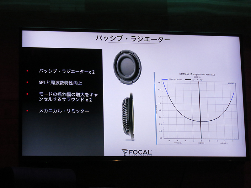 サブウーハーではありません。内部結線されていない、一見スピーカーの様な「ラジエーター」で低音をコントロールするこの技術。