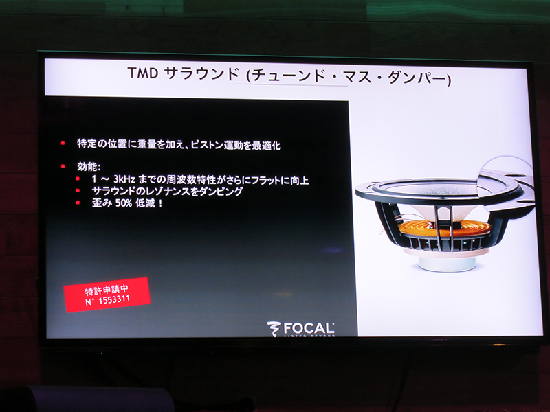そのウーハーユニットを支える、「TMD(チューンド・マス・ダンパー)」技術が採用された、ユニット円周部のダンパー構造。