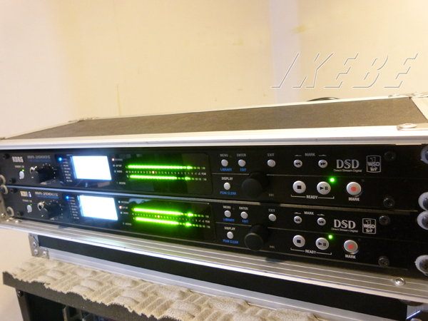 生まれながらのハイレゾ仕様、高性能マイク SENNHEISER MKH800 Twinに装備された、前面カプセル、背面カプセル別々の2系統出力を2台用意されたKORG MR2000で同期録音!