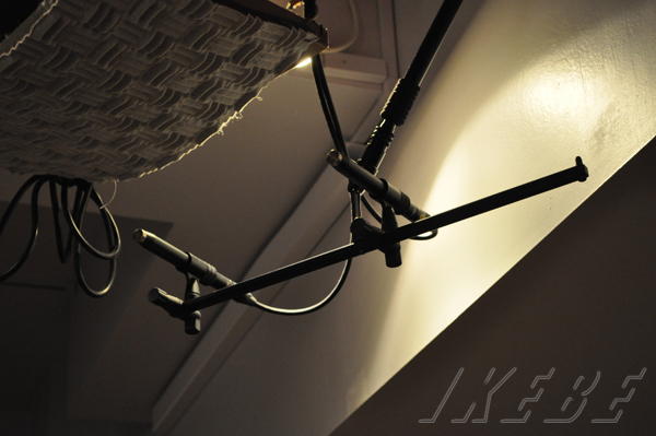 マイクの天井吊りには、TRIAD-ORBITのクランプ型アタッチメント・スタンドを使用!