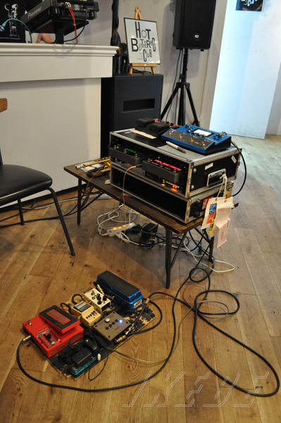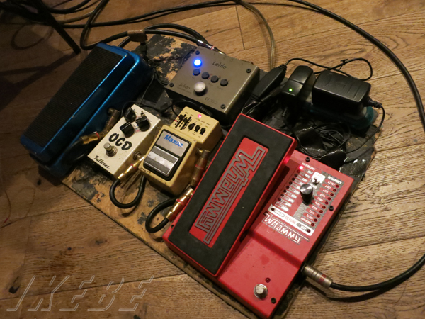 演奏の際、左手側に据えられたラックにも各種エフェクトがセットされています。