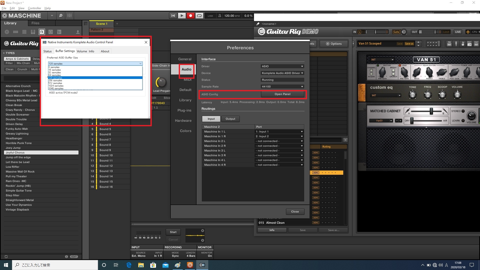 Prefarence(いわゆる環境設定)でKOMPLETE AUDIO 1(WindowsなのでASIO)の設定も完了です。