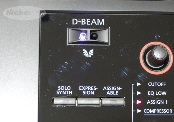 パネル左側にあるD-BEAMコントローラーからは、手をかざすことによってシンセを演奏したり、割り当てたパラメータを変化させることが出来ます。