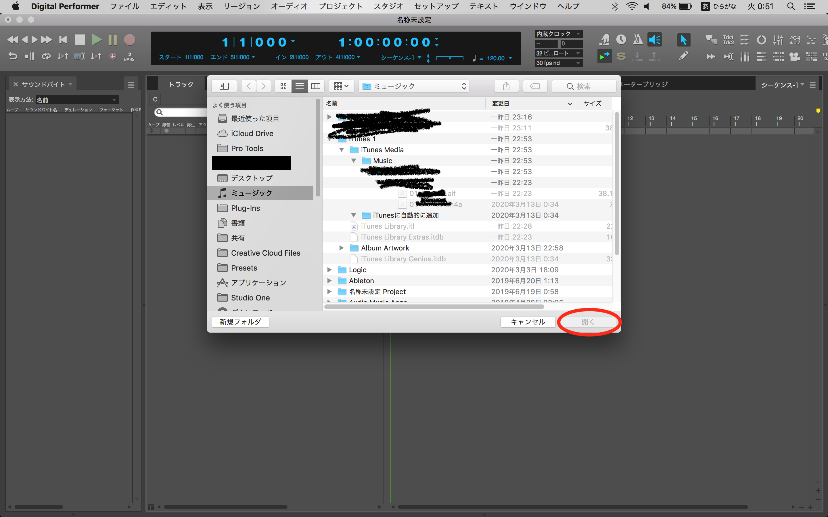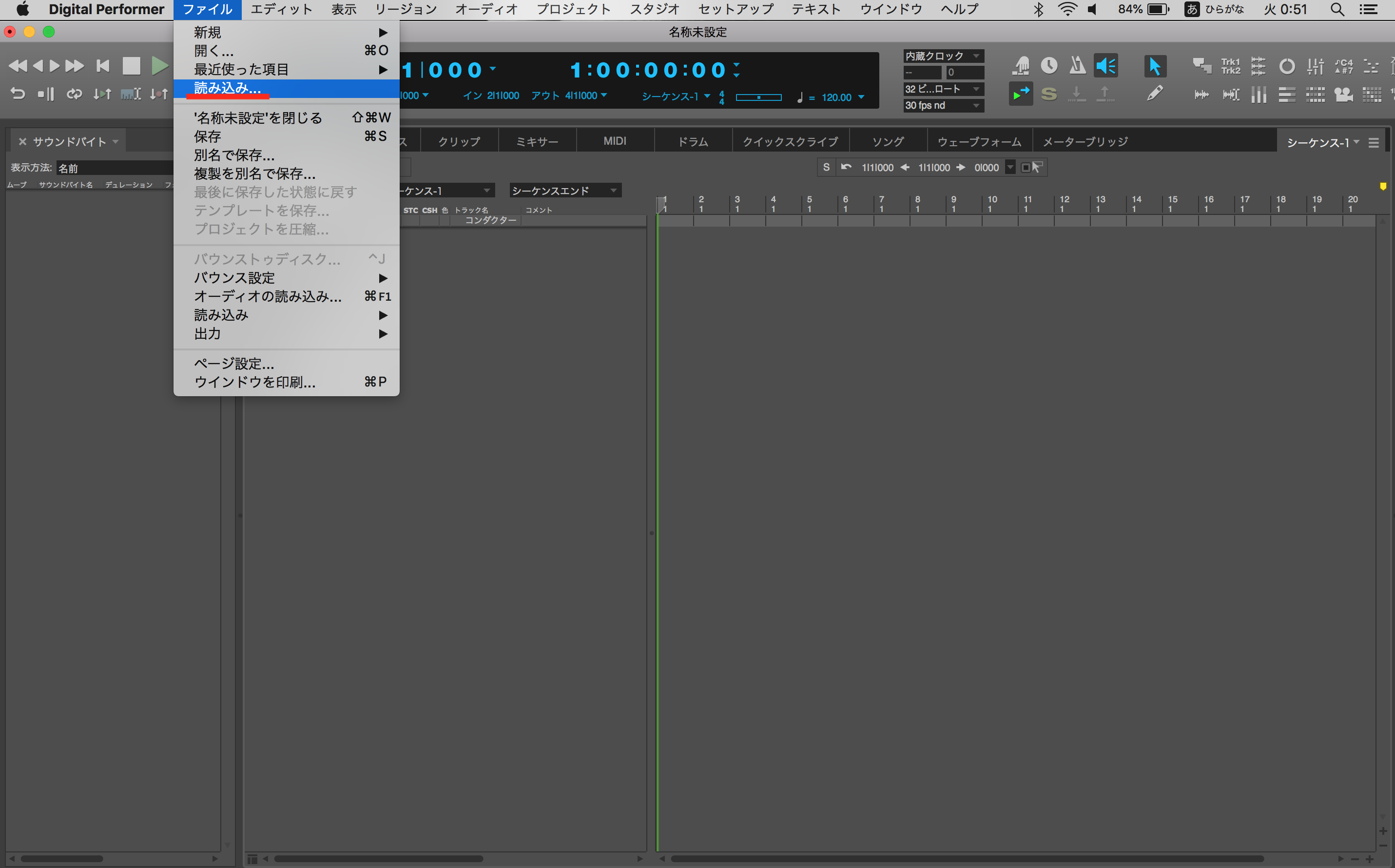 先にやっていた「読み込み」はDP10のセッションファイルを読み込む方だったようです。
