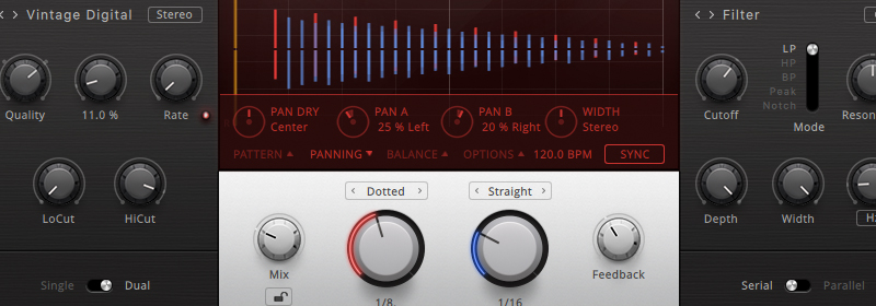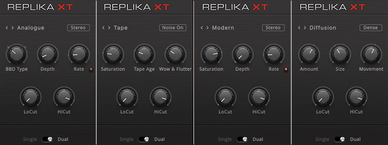 —- そうです!『REPLIKA XT』には、5つのディレイ・モードが備わったマルチ・モード・ディレイです。いわゆる、昔からのディレイ・サウンドやエンジニア的な目線のオーソドックスな使い方から、クリエイティブな目線の最先端のダンスミュージックまで幅広くカバーできるディレイになっています!